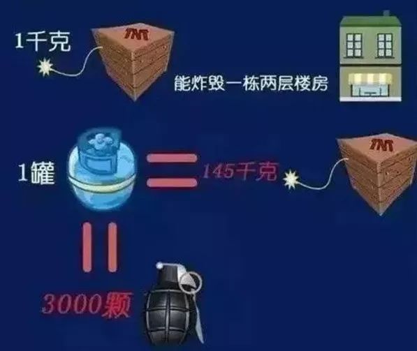 家用液化气罐一般是10升装 爆炸释放出 相当于145公斤TNT炸药的威力。