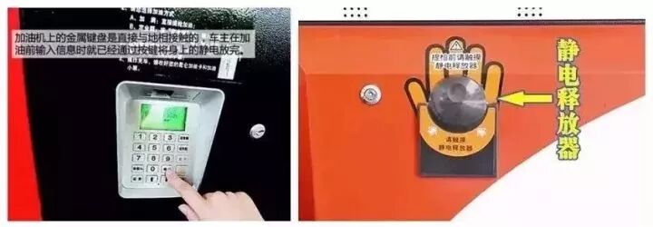 用自助加油机前先“放电”,加油机上的金属键盘是直接与地相接触的,车主加油前需要在键盘上输入自己的加油信息,在输入的过程中,就可完成对身上静电的释放。有的加油机上还有专门的“静电释放器”,加油前用手触摸,也可将身上的静电释放消除。