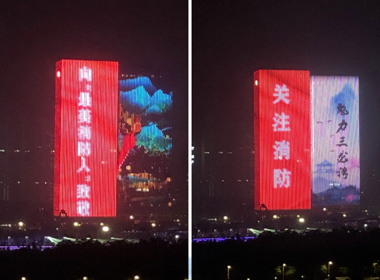 同时,在深圳市民中心、深圳前海公园、珠海日月贝、江门万达广场、东莞中心、佛山千灯湖、清远北江两岸、肇庆七星岩、茂名电白水幕、中山古镇灯具城等标志性建筑灯光表演和无人机表演也会精彩上演。全省各地将为“119”消防宣传月、最美消防人致敬“亮灯”!炫酷的“消防之夜”,等待你来打卡!