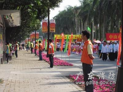 中山消防志愿者顶烈日6小时服务慈善万人行活动