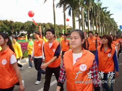 活动当天,志愿者们竭尽所能行使职责,主席台前、巡游道路两旁到处都可以见到穿着橘黄色马甲的志愿者身影,站立在巡游现场两边的志愿者们协助民警维持秩序,保证游行顺利举行;在巡游方队的志愿者们则面带微笑,充分展示着中山消防志愿者的精神面貌和志愿精神。接近6个小时的志愿服务,中山消防志愿者们不仅配合万人行安保部做好相关工作,也以良好的风貌、作风践行了“奉献、友爱、互助、进步”的志愿精神以及“快乐义工、快乐奉献”的中山志愿文化,受到了领导和群众的高度肯定,并勉励大家再接再厉,让中山消防志愿者这面先进旗帜更加的闪亮。